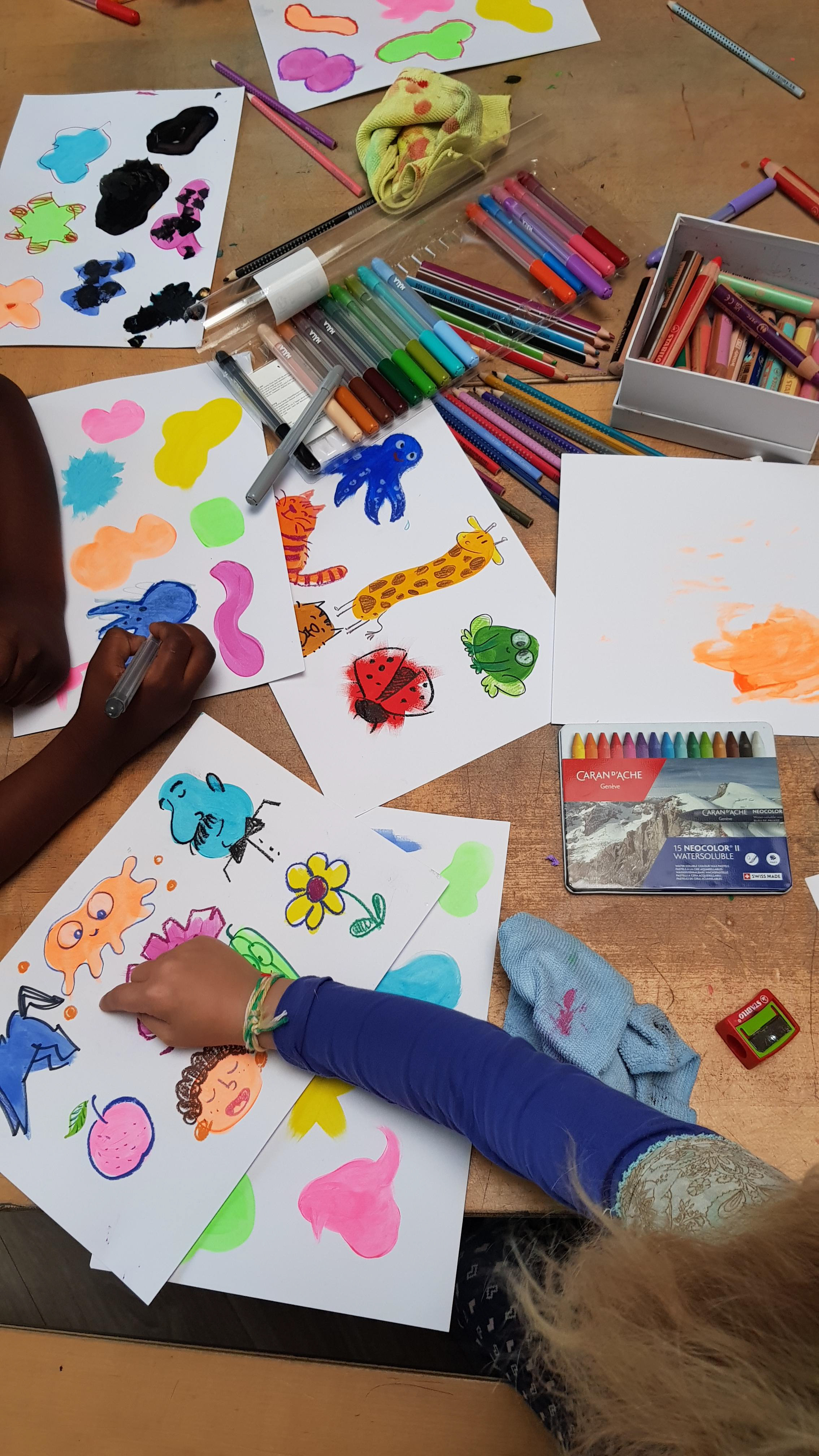 In meinen Kursen wird gemalt, gedruckt, gestaltet, gestempelt und experimentiert, mit Neugier, Freude und vor allem ohne Leistungsdruck.